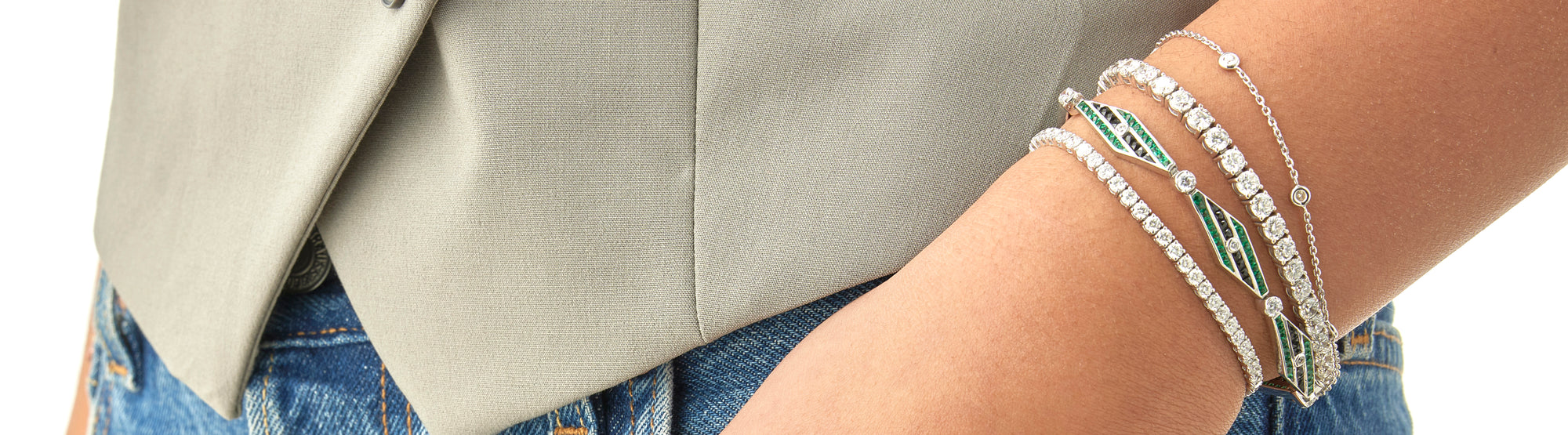 I wonder whether you have memories of your Mother and/or Grandmother with rings on her fingers and bells on her toes. I remember the sound of all my Mum’s bracelets clattering together, I could hear her coming from a mile off. The fashion was rose gold curve link bracelets and many gold rings with small gemstones worn together. Well…..stacking is back, with a vengeance.
